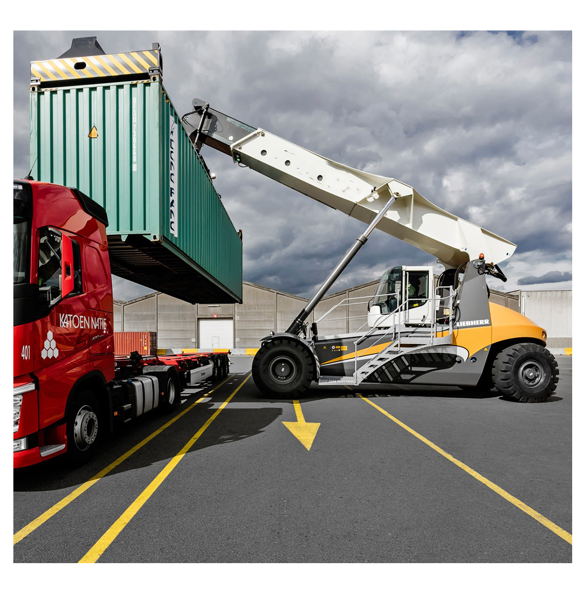 Konteynerlerin ve yarı römorkların hızlı yüklenmesi ve boşaltılması için tasarlanan çevik konteyner istifleyici.