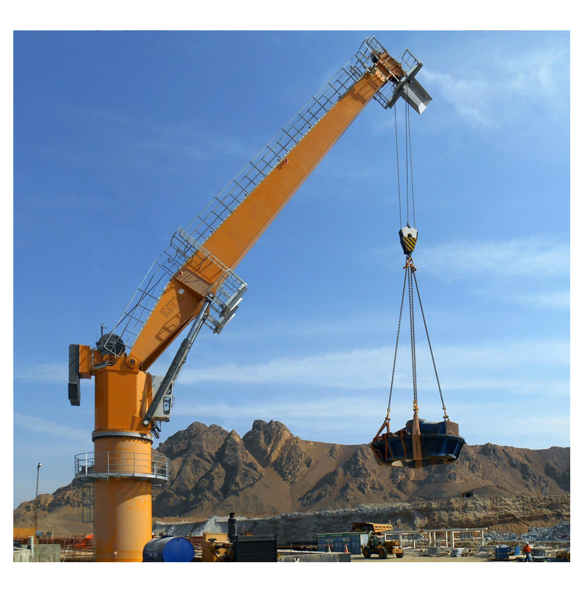 Sabit bir kaide vasıtasıyla doğrudan rıhtım kenarlarına, iskele köprülerine ve limanlara monte edilir. Çok amaçlı kullanım için tasarlanmıştır.